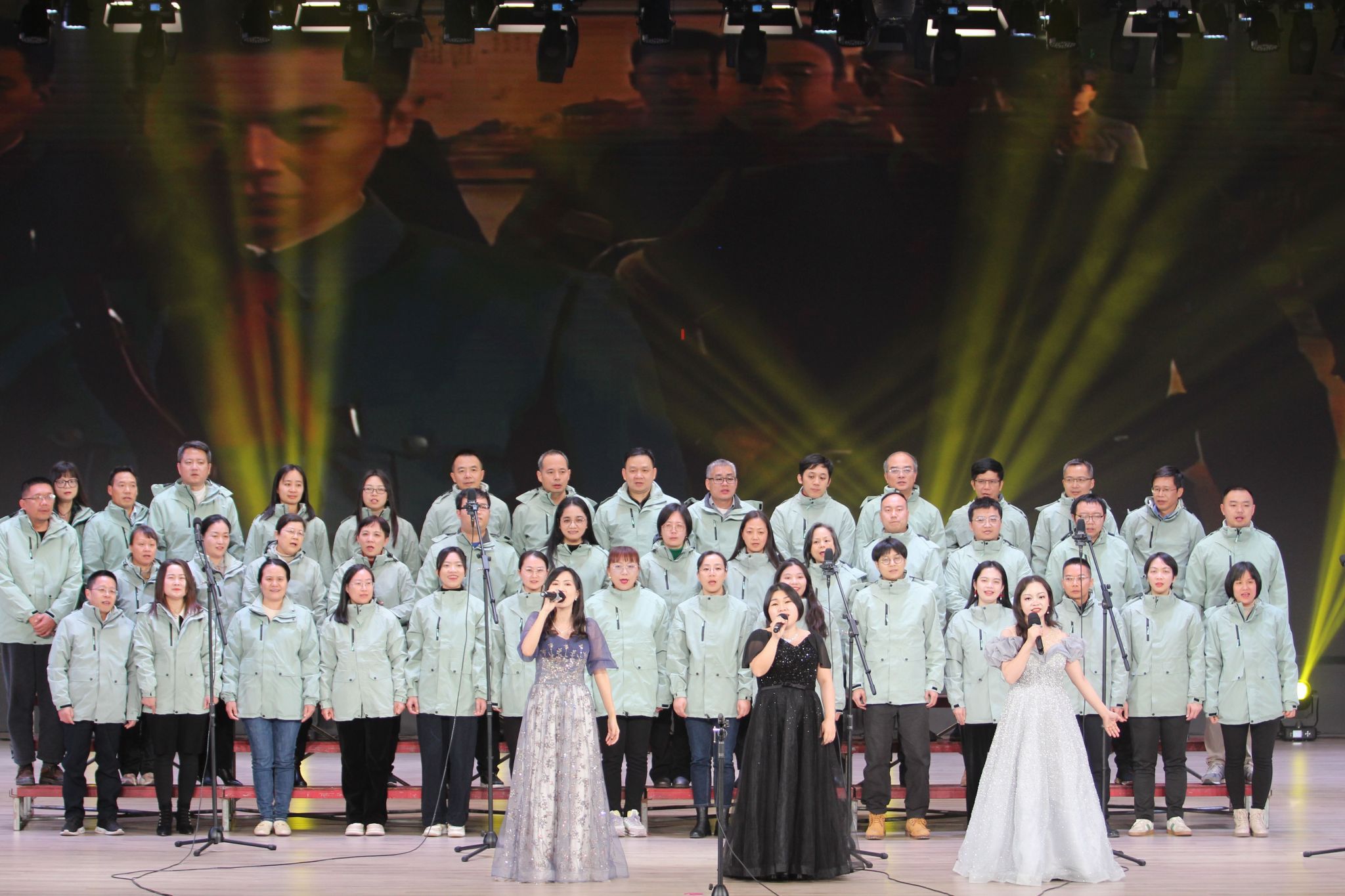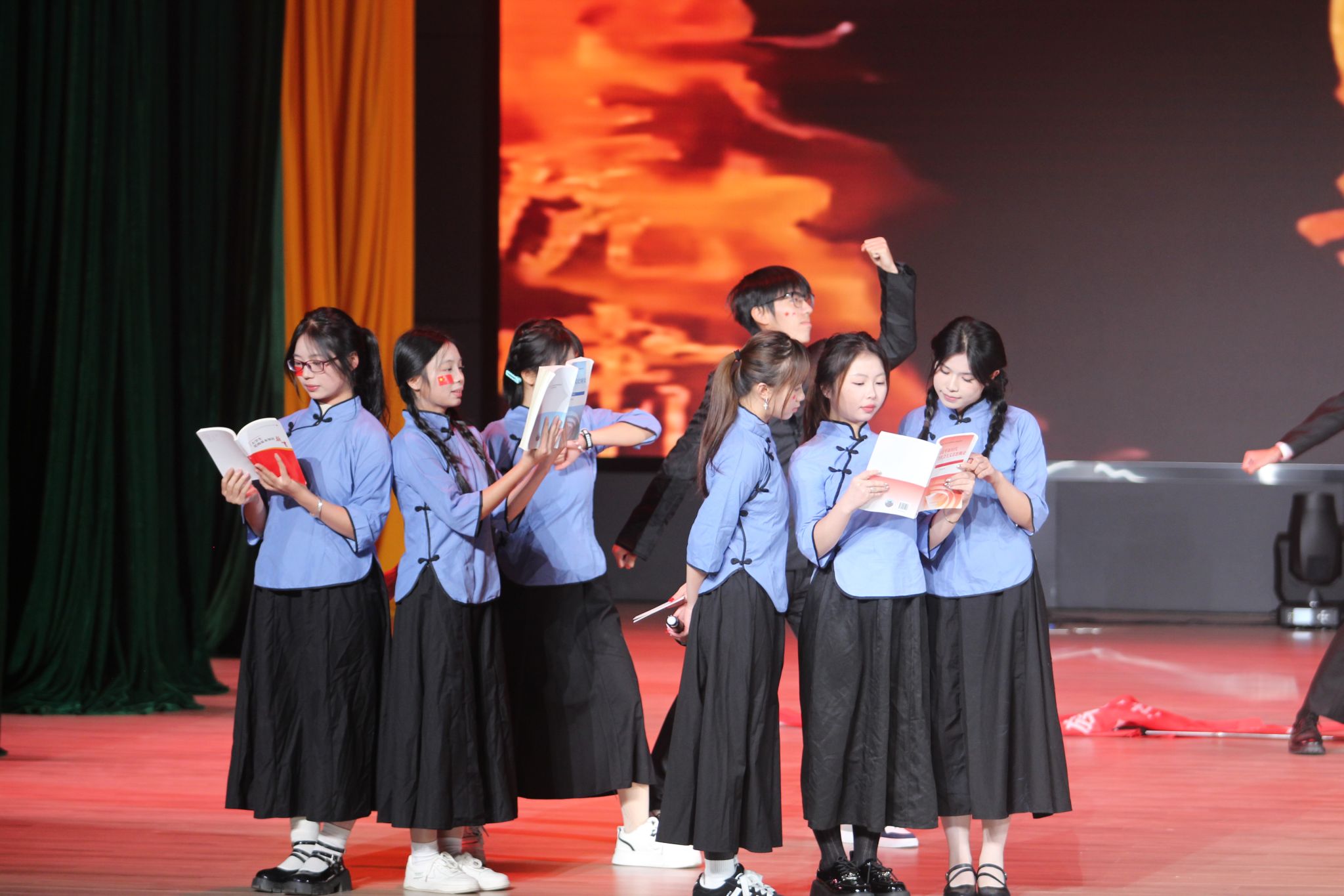 晚会在活力四射的舞蹈《Rotate》中开场,瞬间点燃全场热情,开启了“律动青春,梦启新程”篇章,还有许多精彩的歌唱节目给晚会带来了一场场视听盛宴;校友谭凌霄深情献唱《给孩子们的歌》与《爱在南宁》,用温暖的歌声传递对学子的深切鼓励与对南宁的眷恋,引发全场共鸣;会计党支部精心编排的年代剧《你好,新青年》,从青年抗战到改革开放浪潮,青年们在历史变迁中坚守初心;青马班带来的《少年中国说》朗诵气势磅礴,同学们用激昂的语调诠释了新时代青年的壮志豪情与使命担当,将现场气氛推向高潮;全体教职工齐声演唱《如愿》,寄托着他们对祖国的祝福和对学生的美好期盼与祝愿。这一刻,歌声传递了师生间的深厚情谊,彰显了管院人追逐梦想的坚定决心。