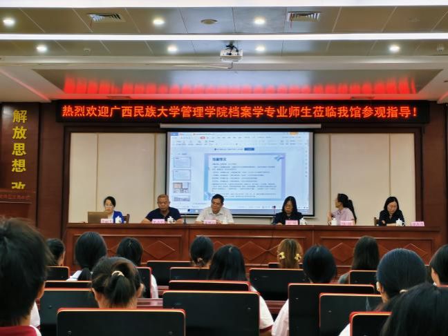 下午15:00,参观活动在武鸣区档案馆档案培训室正式启动。档案馆馆长黄怀演主持开场,表示欢迎。他指出:“档案是历史的见证者,更是文明传承的载体。高校师生带来的新思想与新技术,为档案工作注入了活力。”