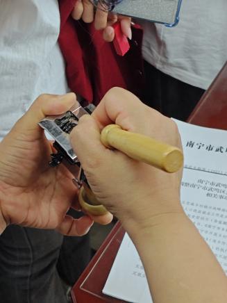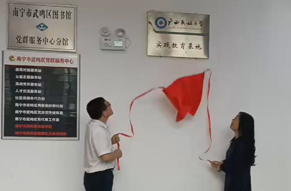 17:00,实践教育基地挂牌仪式在一楼大厅隆重举行。管理学院副院长郑慧与武鸣区档案馆馆长黄怀演共同为“广西民族大学实践教育基地”揭牌,标志着双方合作进入新阶段。郑慧副院长表示:“校馆合作是培养应用型人才的重要途径,未来我们将依托基地开展档案实践活动,推动产学研深度融合。”