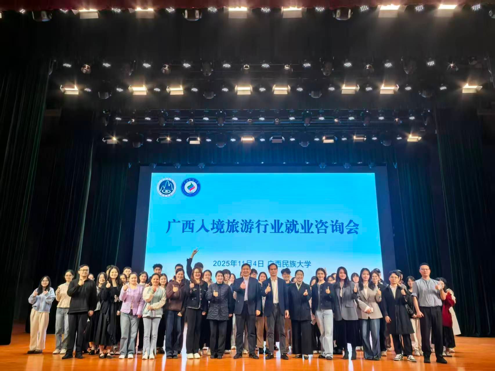 2025年11月4日下午,广西民族大学在思源湖校区大学生活动中心礼堂举办2025年“国际旅游”进校园宣讲活动。本次活动是自治区文旅厅“文旅人才培育计划”的年度重点环节,由自治区文化和旅游厅、广西旅游协会联合主办,旨在搭建“政府—协会—企业—院校”四方联动桥梁,为广西入境旅游高质量发展储备专业化、国际化人才,助力解决旅游行业“国际化人才缺口”问题。管理学院李伟山副院长及百余名旅游管理及相关专业学生共同参加此次活动。