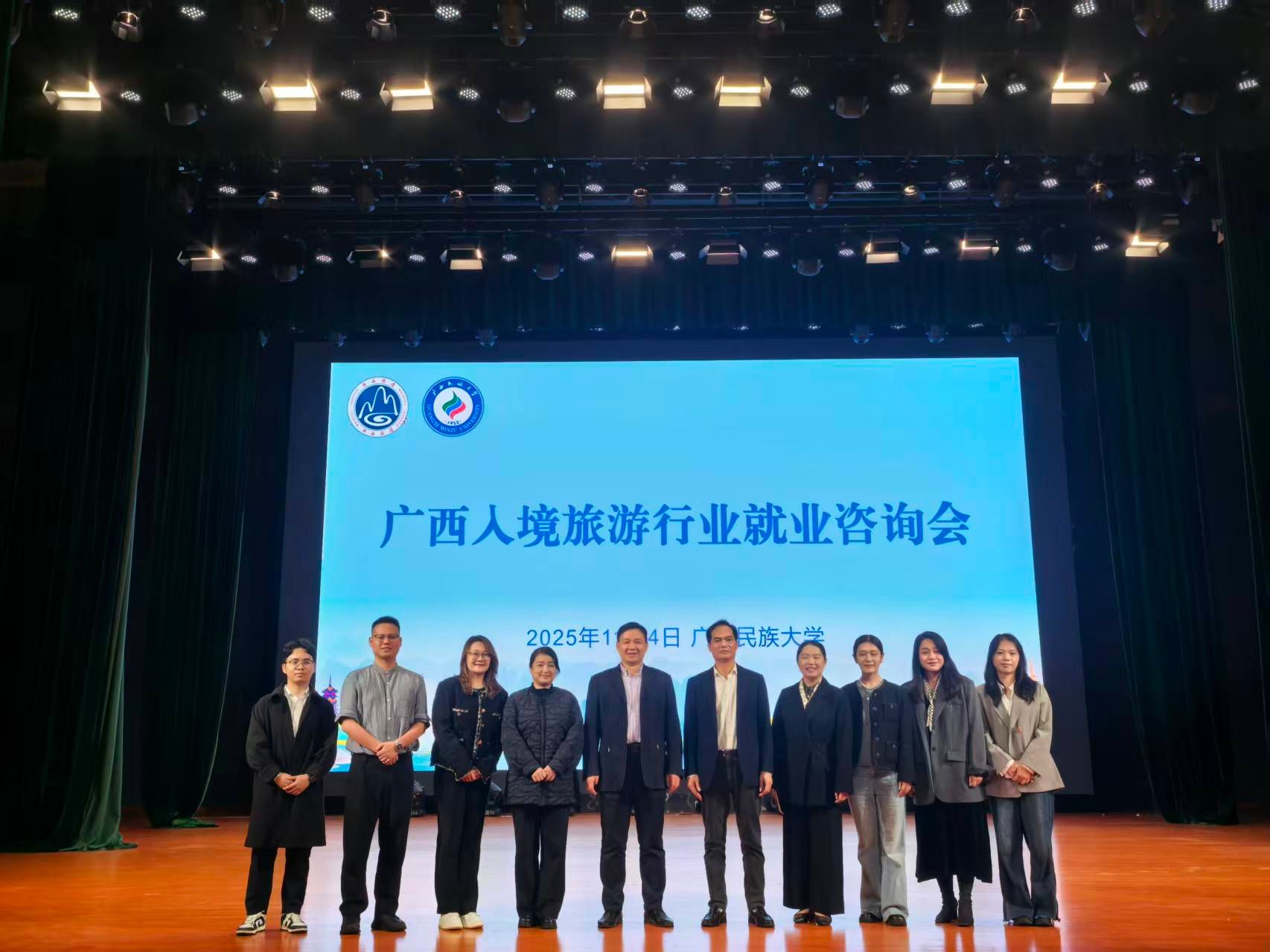 本次宣讲活动通过解读文旅行业政策、对接企业岗位需求,为学生明晰职业发展路径、做好生涯规划提供指引;同时进一步深化产教融合,通过定向输送专业化、国际化文旅人才,为广西入境旅游业高质量发展注入了强劲动能。