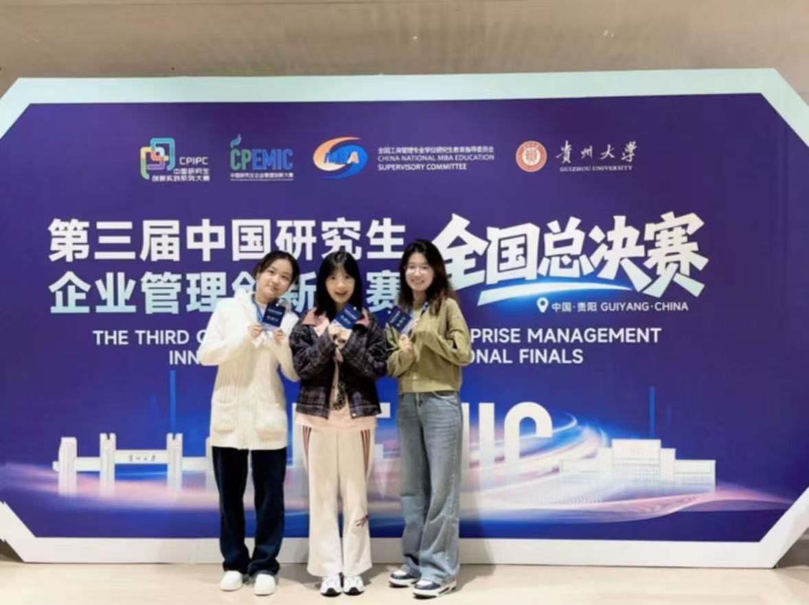 2025年11月9日,第三届中国研究生企业管理创新大赛全国总决赛在贵阳圆满落幕。广西民族大学2025级图书情报专业阮象、刘羽佳、李雨菲三位同学组成的参赛团队,在李武、鄂尔江两位老师的悉心指导下,于企业决策赛道激烈角逐中脱颖而出,荣获国家级一等奖,为学校赢得了重要荣誉。