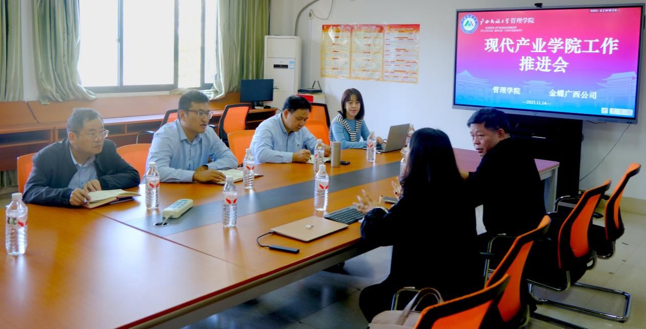 11月14日,广西民族大学管理学院联合金蝶集团广西分公司在相思湖校区国际教育大楼411室召开了现代产业学院工作推进会,聚焦会计专业AI智能化教学改革与人才培养升级。管理学院院长高斌、副院长李伟山及廖东声教授等专任教师与金蝶集团广西校企合作负责人韦晓春出席了本次推进会。