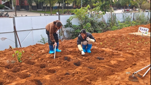 近期,管理学院劳动教育基地内一派热火朝天的繁忙景象——继完成基地启用与首次开垦后,学院师生再次齐聚田间,开启了作物播种的“实战模式”。