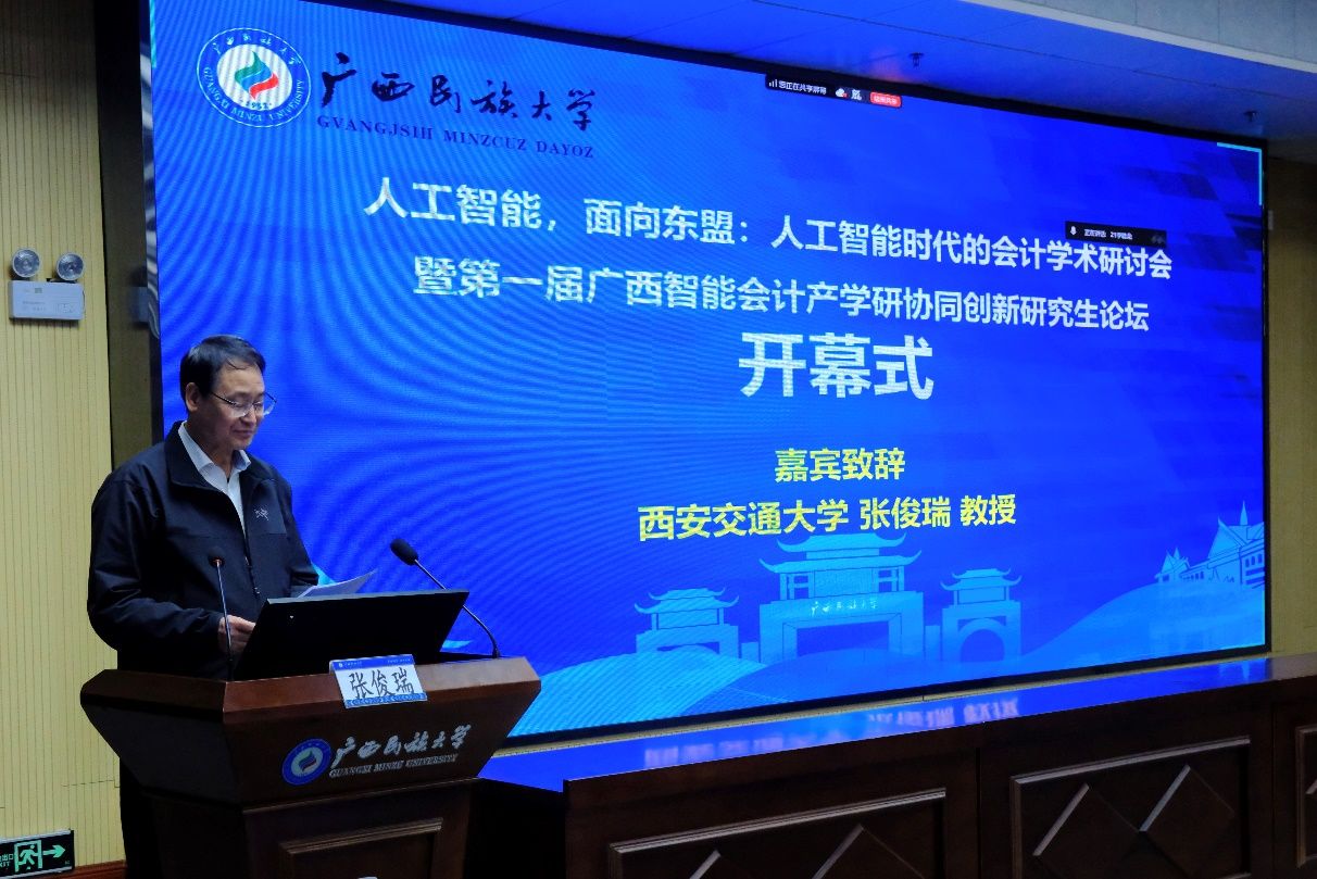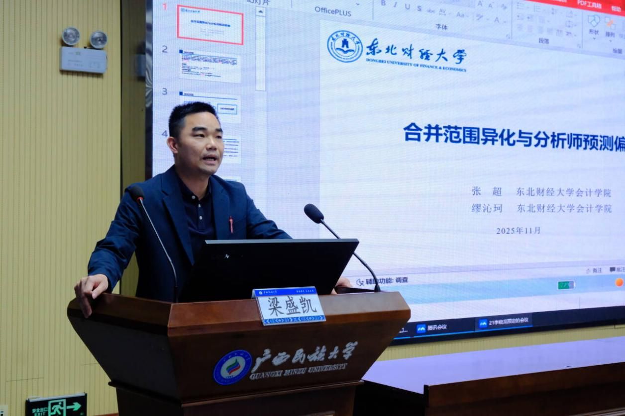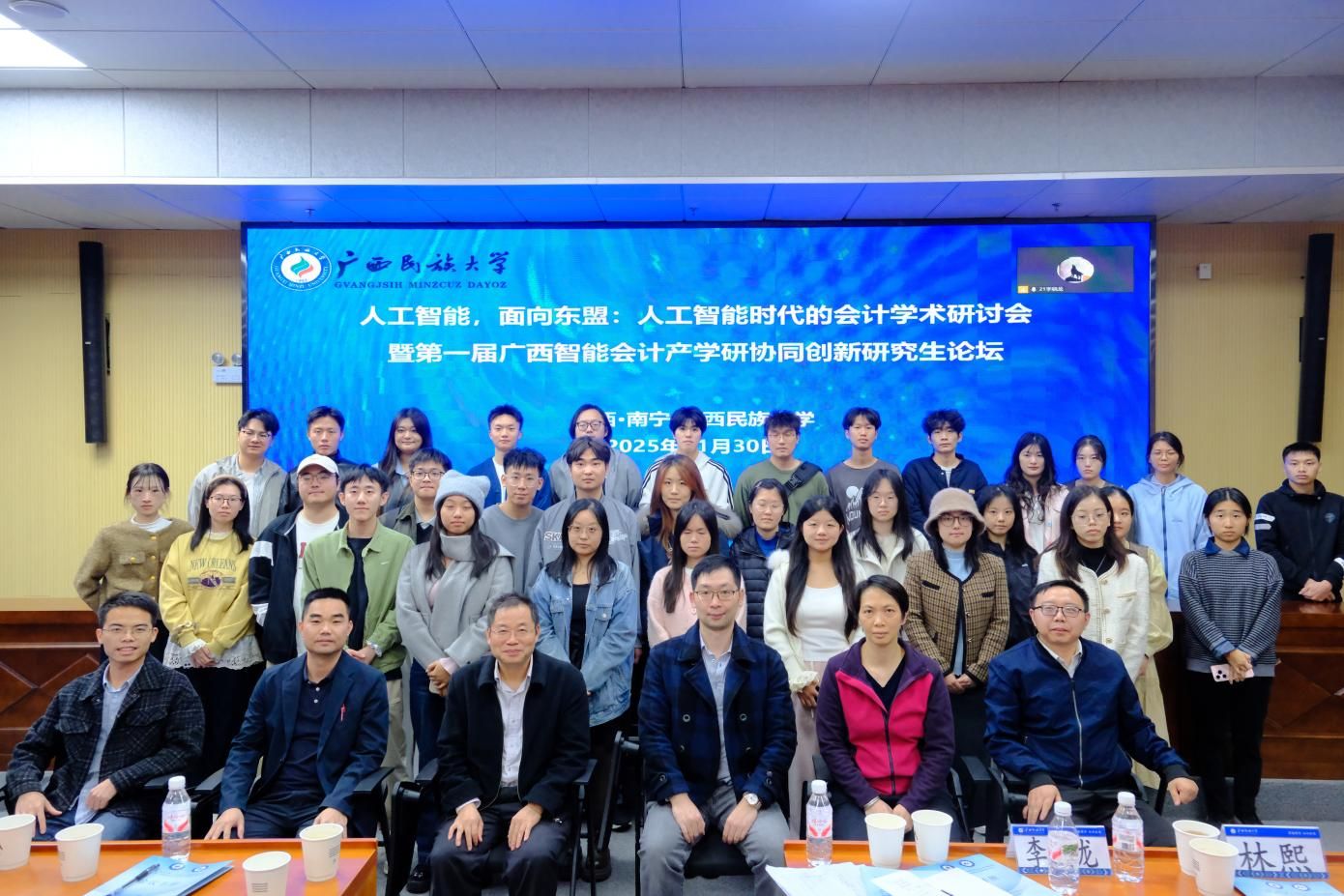 2025年11月30日,由广西本科高校工商管理类教学委员会、广西民族大学及广西会计学会主办的“人工智能,面向东盟:人工智能时代的会计学术研讨会”暨“第一届广西智能会计产学研协同创新研究生论坛”在广西民族大学隆重举行。本次论坛汇聚了国内会计领域的著名专家学者与优秀研究生,围绕学科前沿议题展开了深入交流。