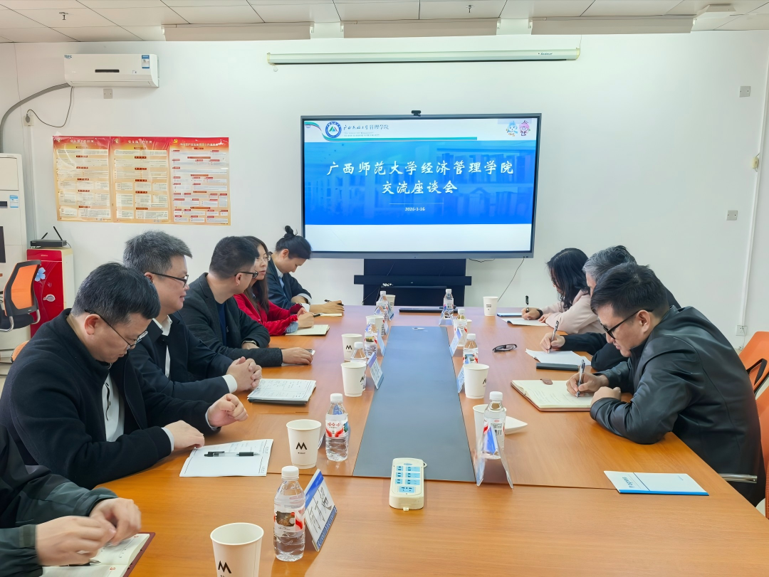 为深化校际合作,互学互鉴先进经验,共同探讨新时代管理学科的创新发展路径,2026年1月16日上午,广西师范大学经济管理学院一行来访我院,双方于相思湖校区国际教育综合大楼411会议室举行交流座谈会。