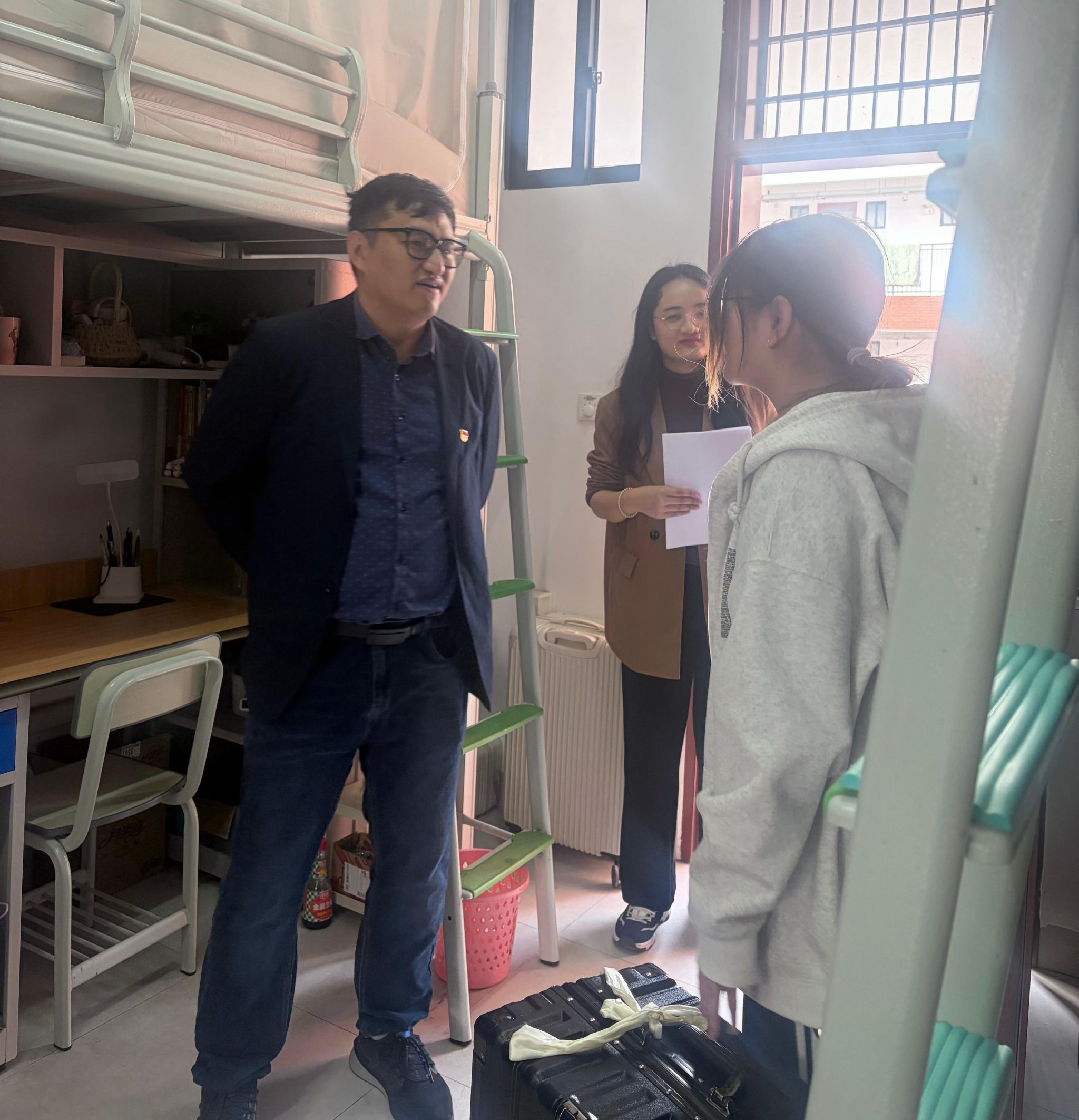 走访过程中,学院领导与同学们进行了亲切的交流,老师们关切询问了同学们的假期生活、返校途中的情况以及到校后的适应状态,并勉励大家要及时调整作息,尽快从假期模式转换到学习模式,以饱满的精神状态投入到新学期的学习生活中。同时,叮嘱同学们要树立安全意识,注意宿舍用电安全、财产安全和人身安全等。