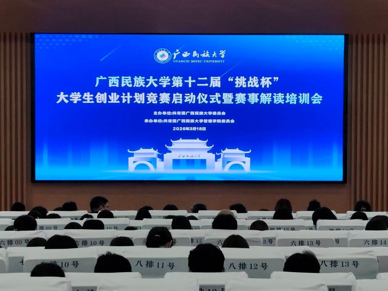 3月18日下午,由管理学院承办的第十二届“挑战杯”大学生创业计划竞赛启动仪式(武鸣分会场)在武鸣校区隆重举行。赛事专家、校团委领导老师、各学院师生代表出席仪式,共同开启了本次赛事征程。