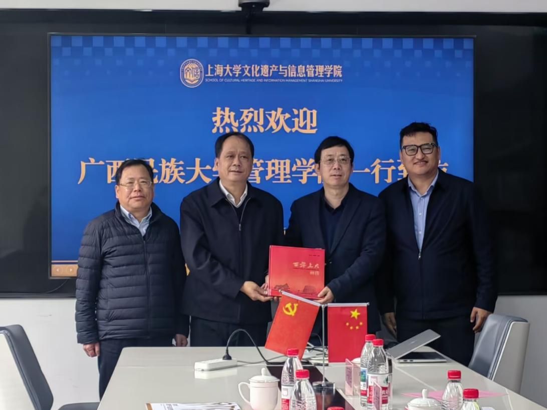 2026年3月26日,广西民族大学党委常委、副校长蔡高根带领管理学院院长高斌等人赴上海大学文化遗产与信息管理学院开展专题交流学习活动。上海大学党委副书记段勇、文化遗产与信息管理学院书记丁华东、院长马萧林等相关领导及教师代表热情接待了访问团。
