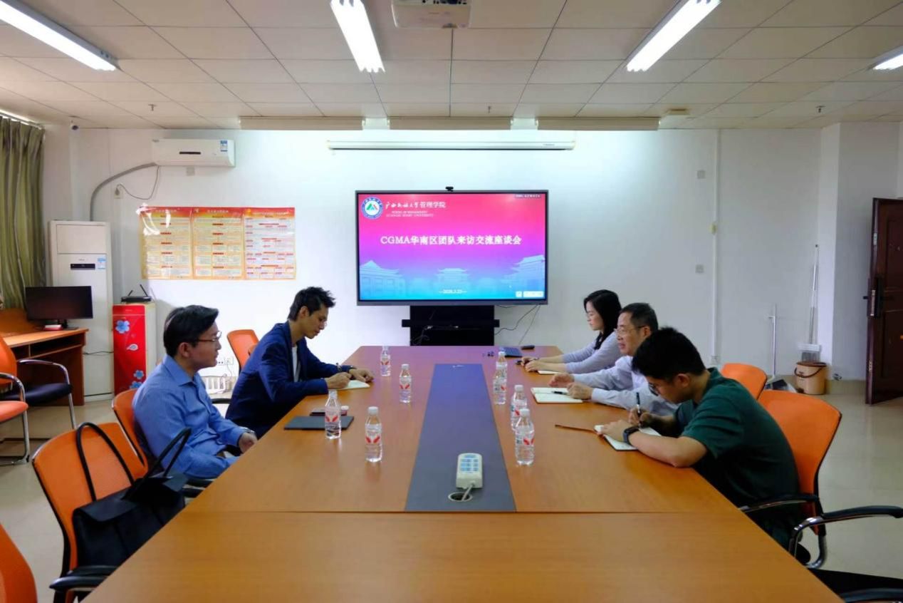 2026年3月25日下午,管理学院中英会计系廖东声教授、封室伊老师、黄宣坚老师与特许管理会计师公会(CGMA)中国区总监梁平、华南区代表梁雁在相思湖校区国教楼411会议室举行座谈会。双方围绕人才培养模式创新、课程体系优化及国际化发展战略等议题展开深入交流。