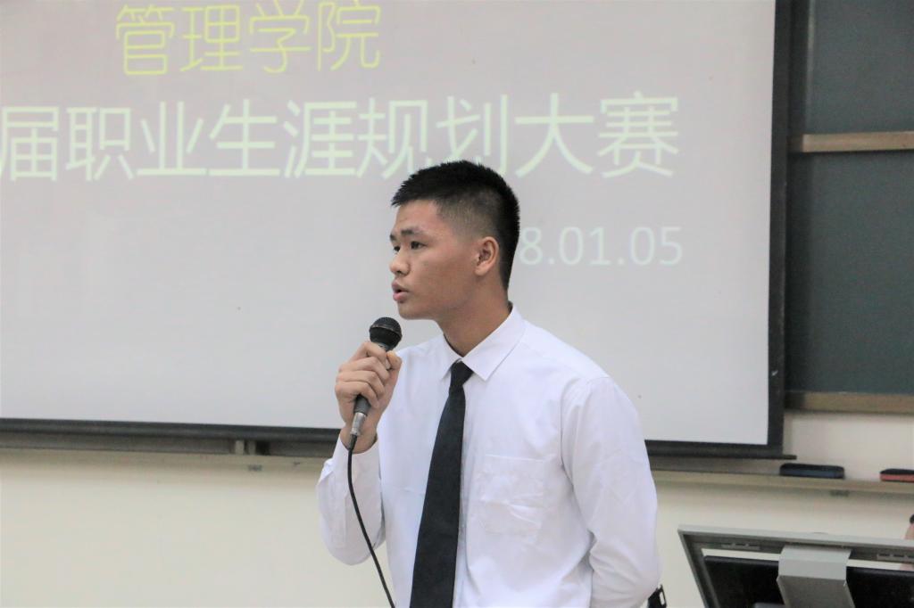 为帮助同学们明确学习目标,端正学习态度,增强学习动力,树立和提高职业规划的意识和能力,管理学院于1月5日晚在学友楼302室举办了管理学院第二届大学生职业生涯规划大赛决赛。莅临现场的有管理学院党委副书记时昌桂,管理学院团委书记马楠,专职辅导员唐剑辉老师、邓昊老师以及早飞教育机构教师刘欢欢。